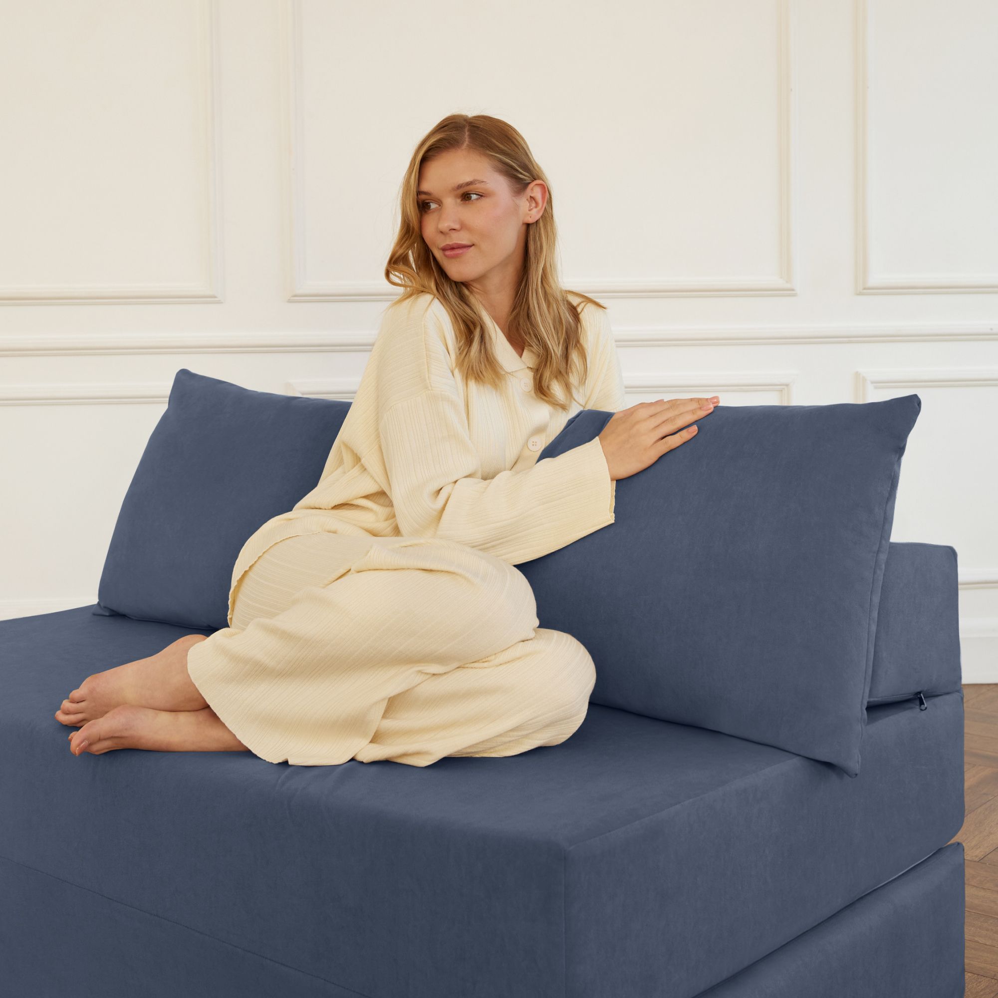 Благодарю магазин за подробную обратную связь по всем вопросам. Цвет, размер, материалы - все приехало, как на фото. Больше всего беспокоила продавливаемость, т.к. был неудачный опыт со старым диваном. Нет, все как заявлено - при весе 65 моего и 85 мужа все хорошо, поверхность вообще не проминается. Размер небольшой, нам такой и нужен был.Заказали в первую очередь как диван в небольшую гостиную, с возможностью использовать как кровать для сна на случай гостей. Конечно, лучше постелить топпер или полноценный матрас, но и без него лежать вполне комфортно. Покупка оправдана, посмотрим, как будет служить.