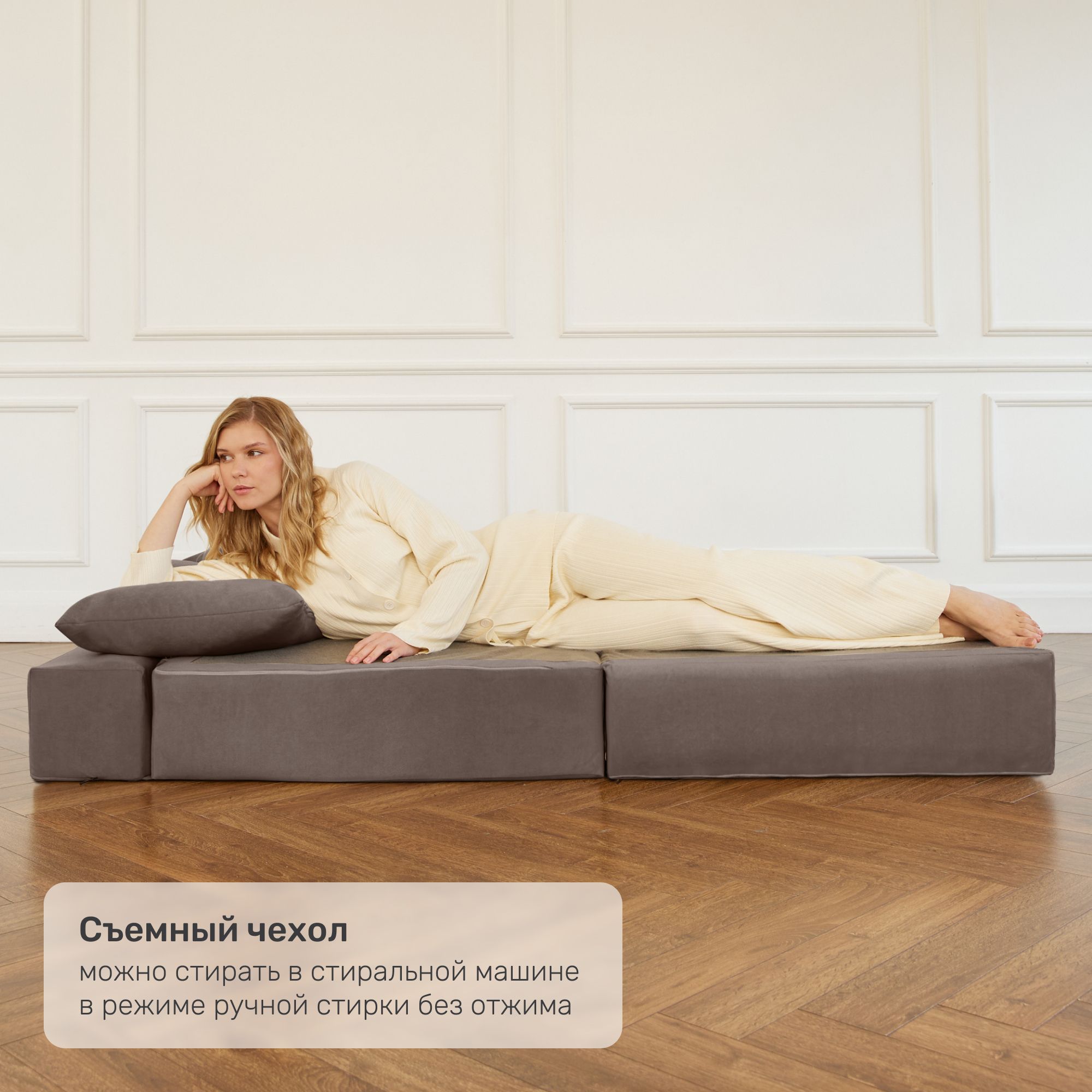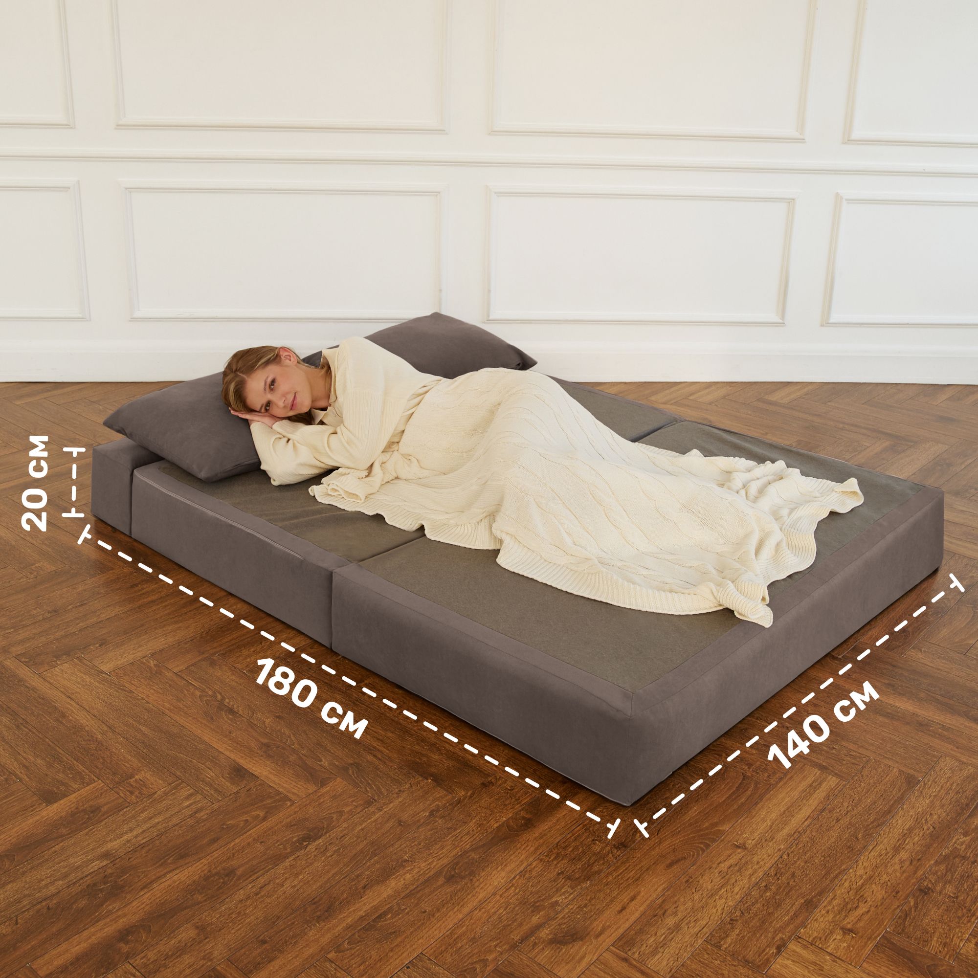 Небольшие размеры, выполен аккуратно, плотный, в целом удобный. Не на постоянный сон, конечно, но как дополнительное спальное место достаточно. Вписался в интерьер.