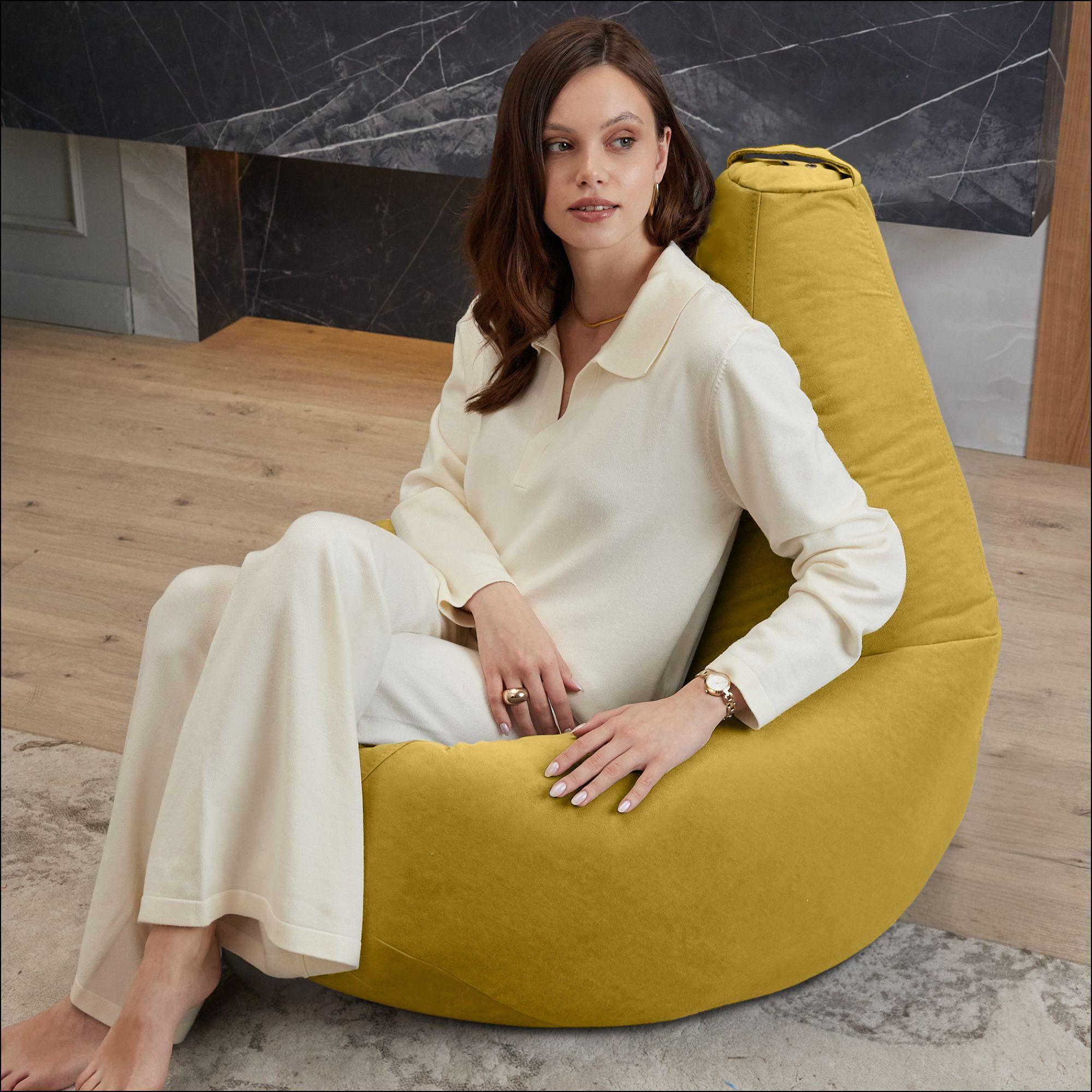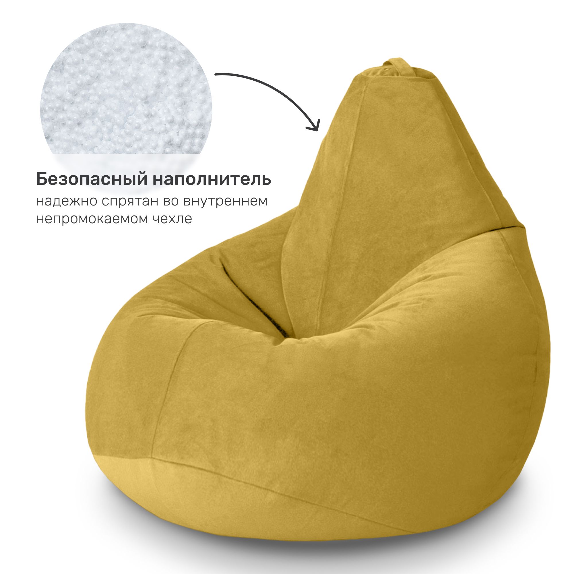 Кресло-мешок "груша" XXL, велюр, горчичный